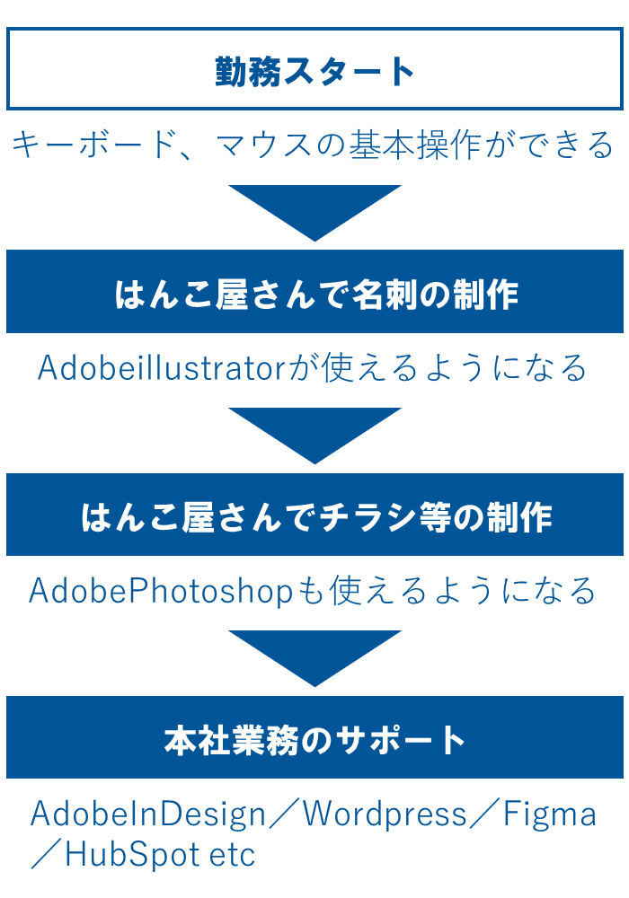 すべてをいっぺんにやらせるのではなく、 1つずつ丁寧に研修を行います。